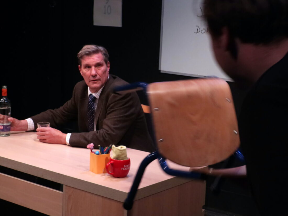 Legendary Shakespearean actor Roger Sutherland, his career on the wane and suffering memory problems that probably signal early onset dementia, is forced to swallow his pride (along with sinking a gallon of gin) and offer cash-in-hand night class acting masterclasses in primary school classrooms. In constant fear of being caught out by the tax man, his current situation is a far cry from his glory days starring in Richard III in the West End…